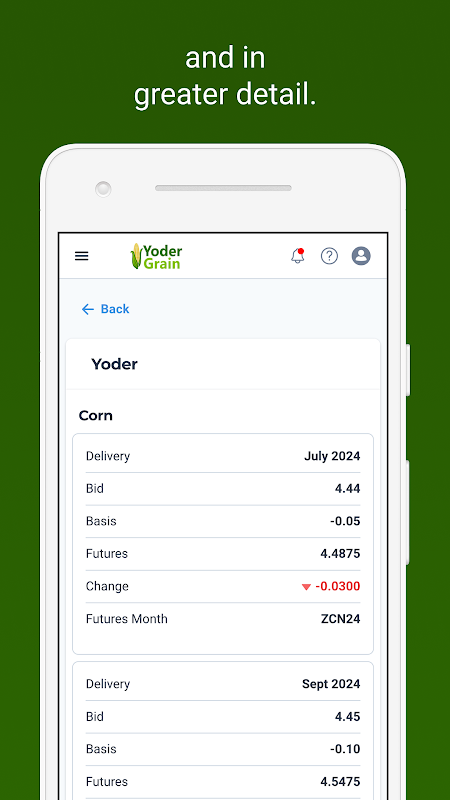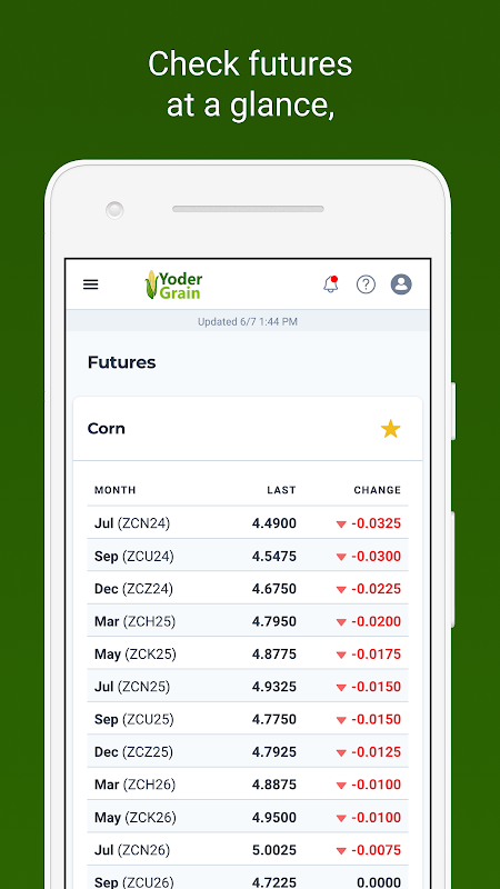 যারা Yoder Grain এর সাথে ব্যবসা করেন তারা দিনের যে কোন সময়, যে কোন জায়গা থেকে বর্তমান শস্য বাজারের তথ্য অ্যাক্সেস করতে পারেন। আমাদের অ্যাপ থেকে সর্বাধিক সুবিধা পেতে এবং আমাদের যোগাযোগের সাথে আপডেট থাকতে, আমরা বিজ্ঞপ্তিগুলিকে অনুমতি দেওয়া বেছে নেওয়ার পরামর্শ দিই।