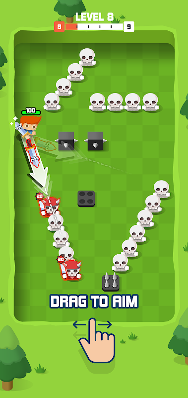 এখানে এবং সেখানে লক্ষ্য করুন এবং সমস্ত দানবকে হত্যা করুন।