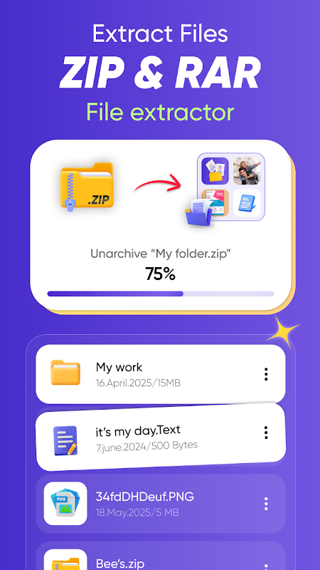 জিপ এবং আনজিপ এক্সট্র্যাক্টর হল আপনার সম্পূর্ণ ফাইল ম্যানেজার এবং উত্পাদনশীলতা সহকারী যা ফাইলগুলি পরিচালনা করা, ডেটা সংকুচিত করা, নথি তৈরি করা এবং আপনার ডিজিটাল কাজের পরিবেশকে সহজতর করে তোলে।