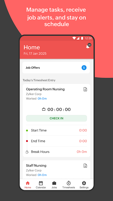 আপনি সহজেই চেক ইন করতে পারেন এবং আপনার কাজের সময় পরীক্ষা করতে পারেন এবং আপনার প্রতিদিনের ক্রিয়াকলাপের জন্য বিরতির ঘন্টা যোগ করতে পারেন। রিয়েলটাইম চেকইন আপনি আপনার কাজের সময় রিসেট করতে পারবেন।
