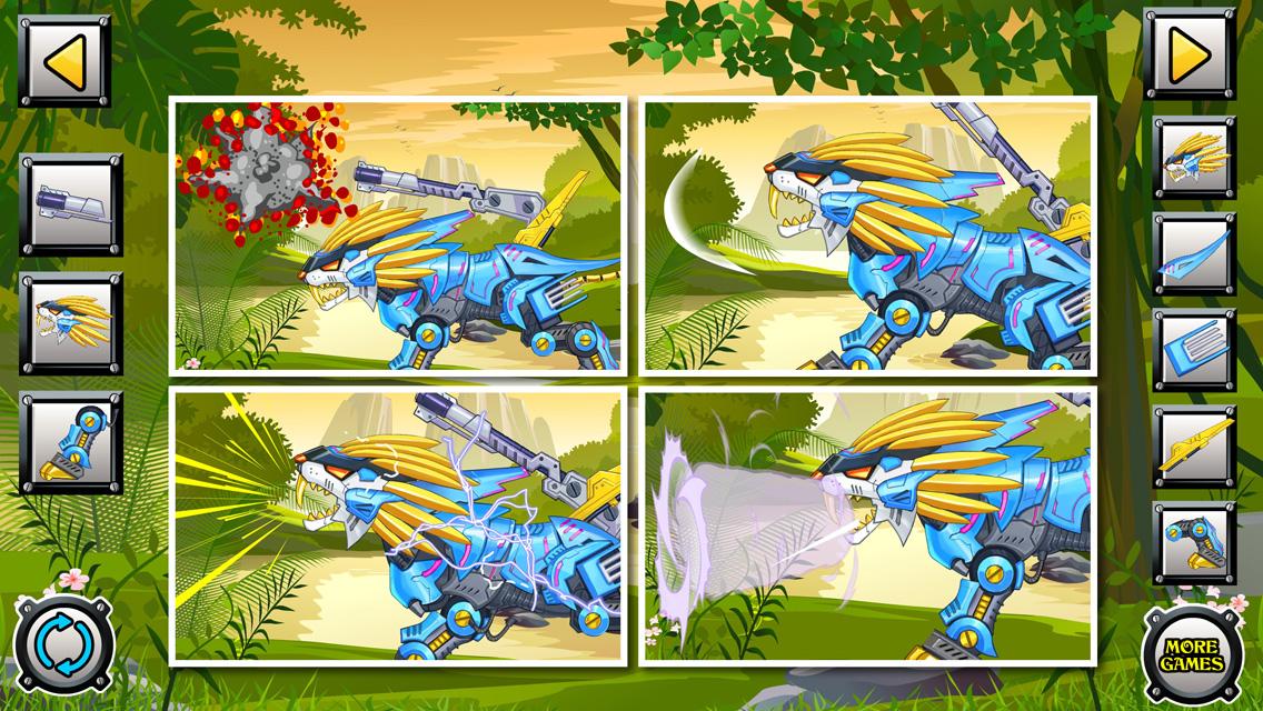 This is a puzzle game, there are a lot of machine animals in the zoo, this time we have to assemble a machine lion.