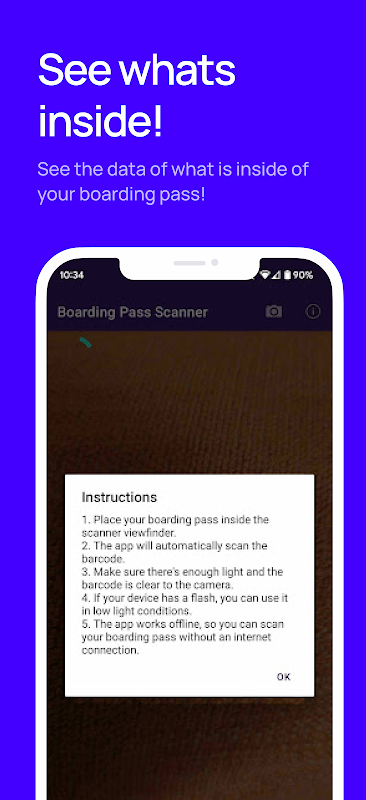 Scan Boarding Passes: Instantly scan boarding passes using your device's camera, extracting relevant information from the barcode.
