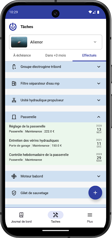⏰ Receive automatic alerts for upcoming deadlines (engine, electrical, hull, rigging, electronics, etc.)
