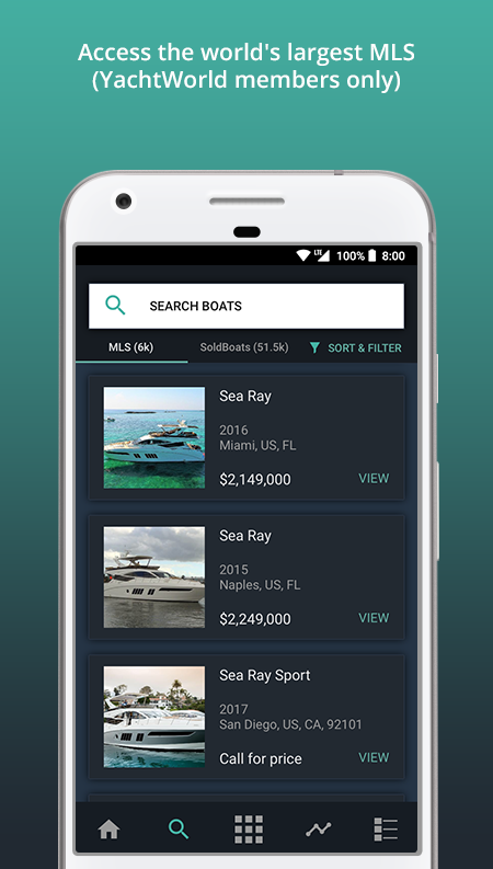 In addition, YachtWorld brokers and dealers can search the 90,000 vessels available in the MLS and access the Soldboats database to search and view sold boat information.