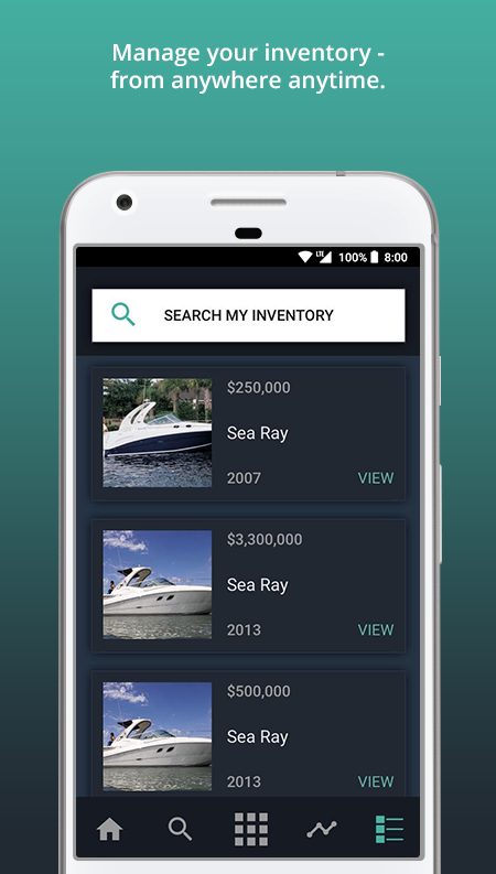 The app’s intuitive design makes it easier to manage your business, source boats for purchase, and sell boats faster - from anywhere. Contact sellers and forward listings to clients at a moment’s notice. Review seller stats, including total impressions, leads, and views your boat listings have received.
