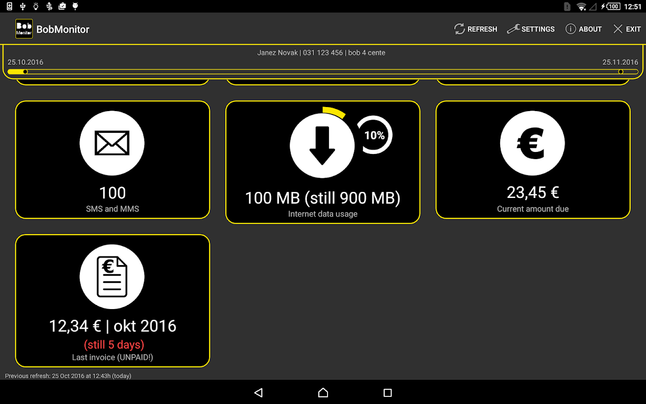 BobMonitor can show your usage information from Slovenian mobile operator Bob.