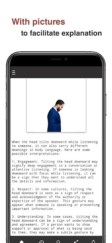 "Body Language | learn & test" is the ultimate tool for mastering the intricacies of non-verbal communication. Whether you're aiming to enhance your personal relationships, excel in your career, or simply become a more effective communicator, this app is your guide to deciphering the unspoken language of the human body. Start your journey today and unlock a world of knowledge at your fingertips.