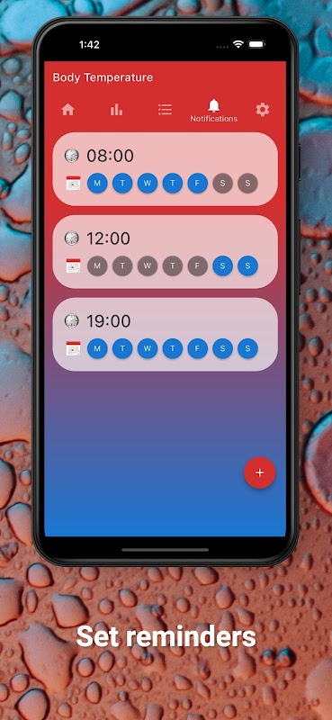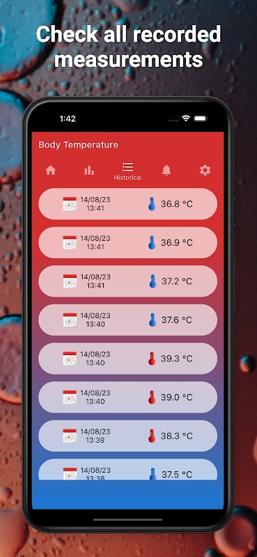 This app allows you to track your body temperature on a daily basis. It's very simple, just record the measurements and check the statistics over time.