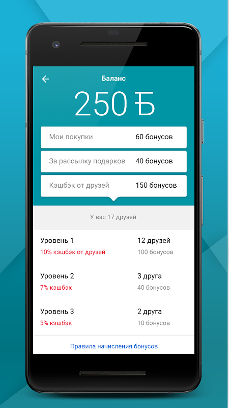 - Earn bonuses due to sending gifts and get cashback from all purchases and purchases of friends and their friends.