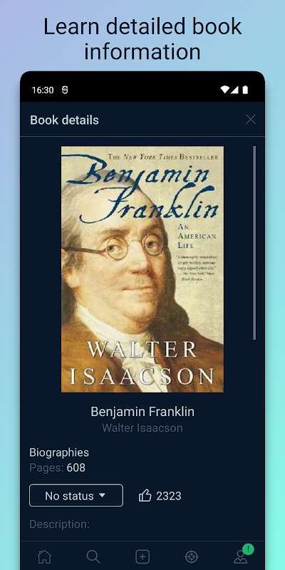 Lightning-fast speed of the application, convenient boards and book status management will help you quickly add books to your reading diary.