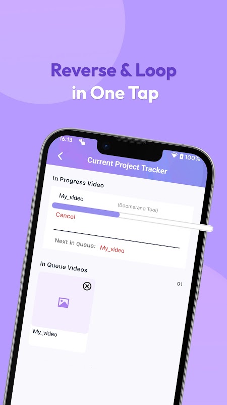 Instantly convert any video into a looping Boomerang. Select your clip, tap to loop, and you’re done!