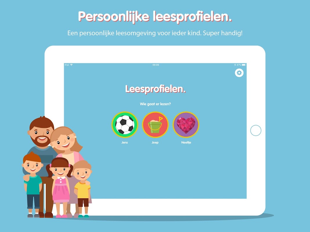 Booqees is beschikbaar voor zowel Android telefoons als tablets. Na het aanmaken van een proefaccount dien je per kind een persoonlijk leesprofiel toe te voegen binnen je account. Op deze manier heeft ieder kind een eigen leesomgeving met zijn / haar eigen favoriete kinderboeken en persoonlijke aanbevelingen. Super handig!