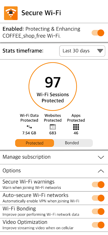 Boost Mobile Secure Wi-Fi automatically encrypts your data when you are connected to a Wi-Fi network. As soon as a Wi-Fi network is detected, Secure Wi-Fi enables a VPN connection to make sure no one can steal your passwords, hijack your login, or monitor your activity.