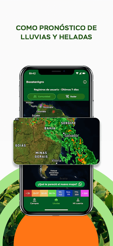 * Rainfall Map: Allows you to visualize the cumulative rainfall of the last 7 days in the area of your farms. The data comes from the user's rainfall raingauge records.