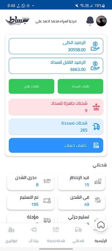 Through the customer interface, through the application, he can add shipments, follow up on his shipments, their status, the shipment’s itinerary, and follow up on his balances and accounts.