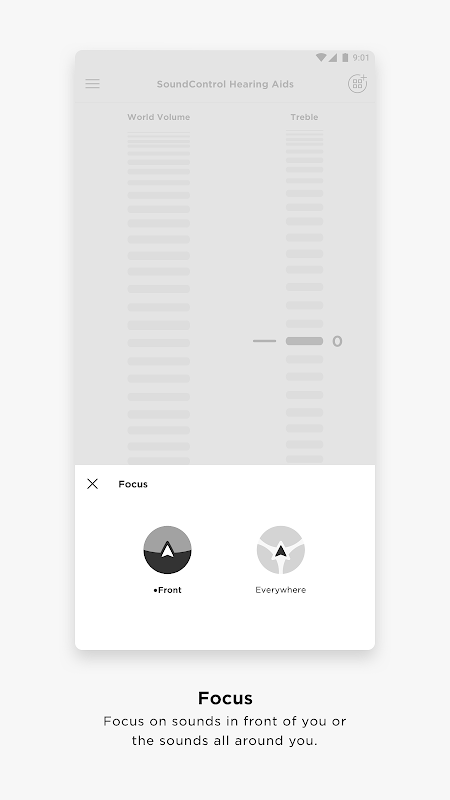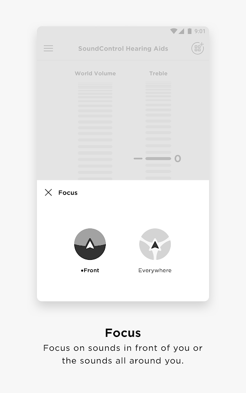 Bose Hear App’s CustomTune™ Technology pairs with Bose SoundControl™ Hearing Aids to provide clinically-proven, audiologist quality customization. With just two controls, you can set the volume and sound clarity to your liking. World Volume turns up the sounds around you so you can hear better, while the treble/bass settings let you adjust the tone so voices and sounds are clearer.