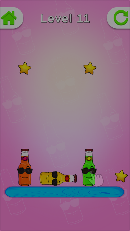 Bottle Tap is simple game where you need to tap the bottles and collect stars, first levels are pretty easy but as far you go it will be harder and harder.