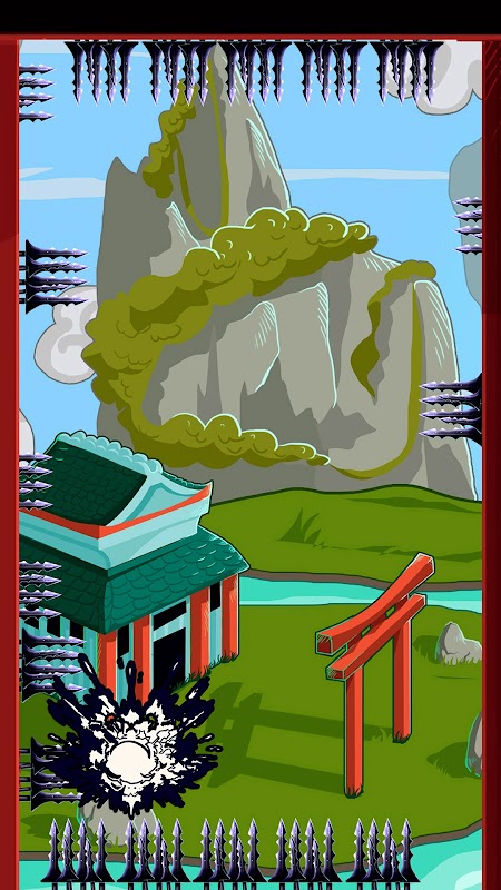 Lucky for him, he has many lives (maybe he is a distant cousin to cats…) and the temple where he is kept has many blades to threaten him as he bounces around.