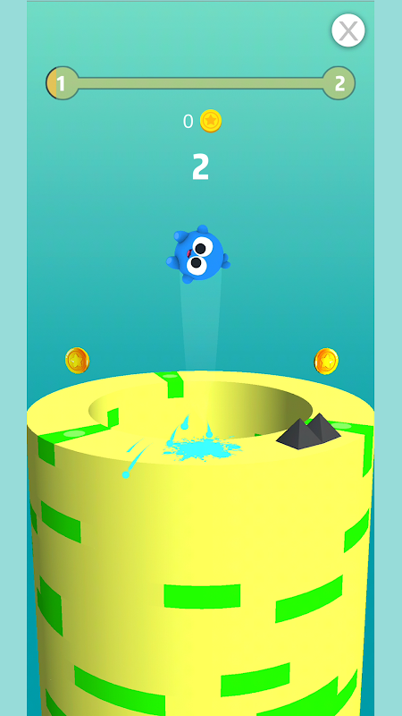 Swipe the screen left and right, rotate the pillar, help it obtain coins, avoid obstacles, and break open the pillar. After reaching the bottom, try to touch the button and rescue your companions from the cage, enjoying the joy of jumping together.