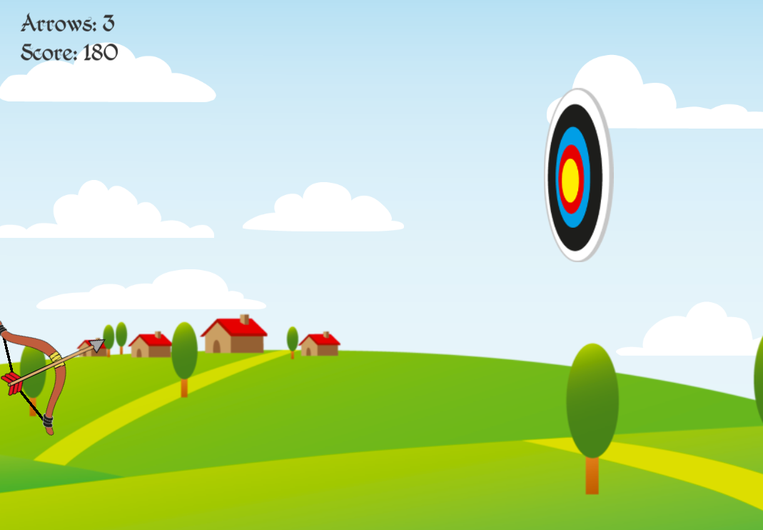 Bow and Arrow fun game. Aim at the target and make a bull eye.