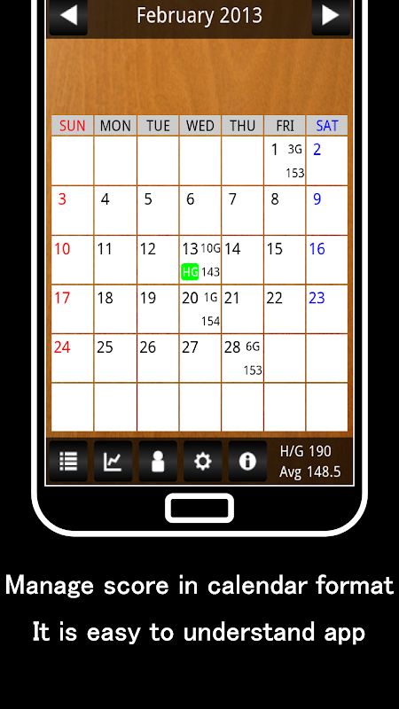 Score of bowling that you enter will be displayed in a variety of ways in each screen.