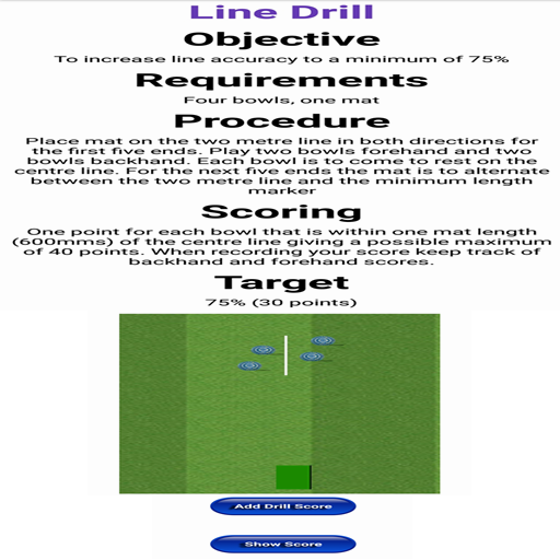 The Bowls Practice App have 12 practice drills for you to get your Lawn Bowls Game in tip top shape.