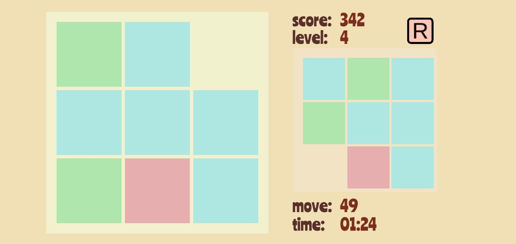 • As you complete the levels grid will include more boxes. You will see levels with 4x4 or even 5x5 grids!