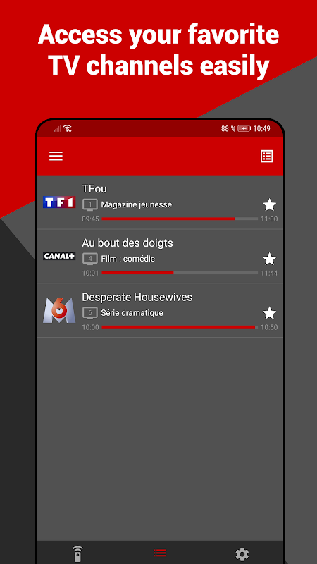Pilot your Freebox TV from your phone. This Freebox remote control is simple, complete and ergonomic.