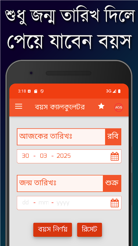এই অ্যাপ দিয়ে আপনি, আপনার ফ্যামিলি বা বন্ধু-বান্ধবদের বয়স গণনা করতে পারবেন। কত দিন, কত মাস ও কত বছর হয়েছে তাও জানতে পারবেন এবং সেই সাথে জানতে পারবেন পরবর্তী জন্মদিন।