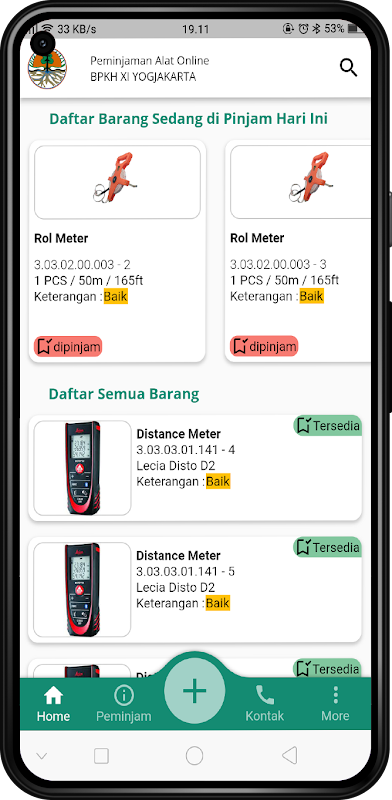 Tersedia dalam mobile Android dan Web based. Untuk versi web based dapat diakses dengan alamat url https://pinjamalat.bpkh11jogja.net/.