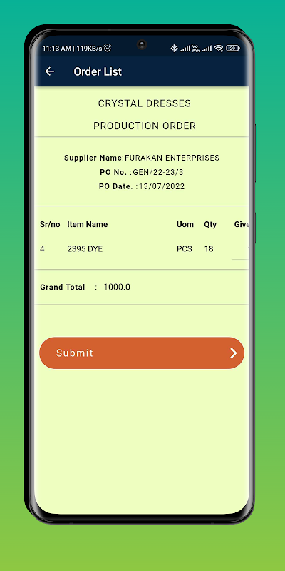 This is an app which scans production order and helps to transfer material from one stage to another stage. This app helps to automate external job work production process. It also reduces our manual entries to the DataNote ERP system.