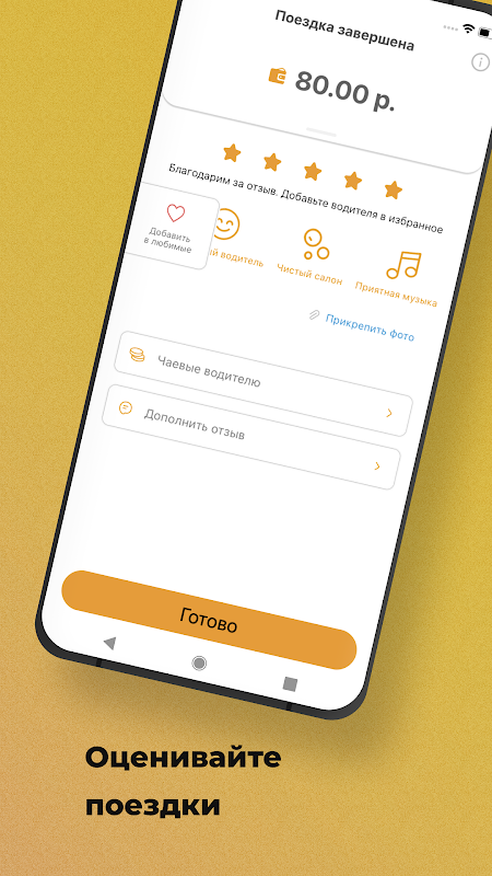 Avalie o motorista, escreva um comentário ou selecione uma reação em modelos prontos. Anexe uma foto ao seu comentário.