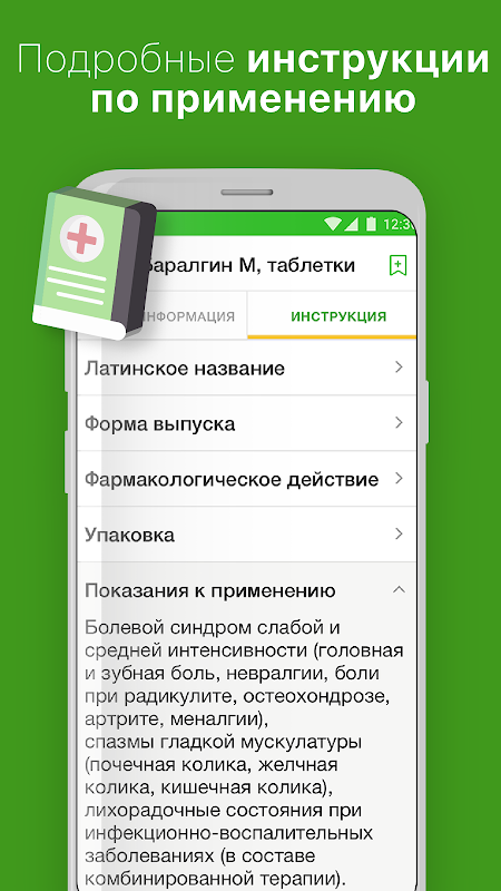 O aplicativo contém mais de 15 mil nomes de medicamentos do Registro Estadual de Medicamentos, cujas informações completas, incluindo princípio ativo, grupo farmacológico e composição do medicamento, são atualizadas automaticamente e correspondem às oficiais. O aplicativo salva o histórico de medicamentos visualizados, o que permite ao usuário acompanhar as alterações nos preços dos medicamentos necessários.