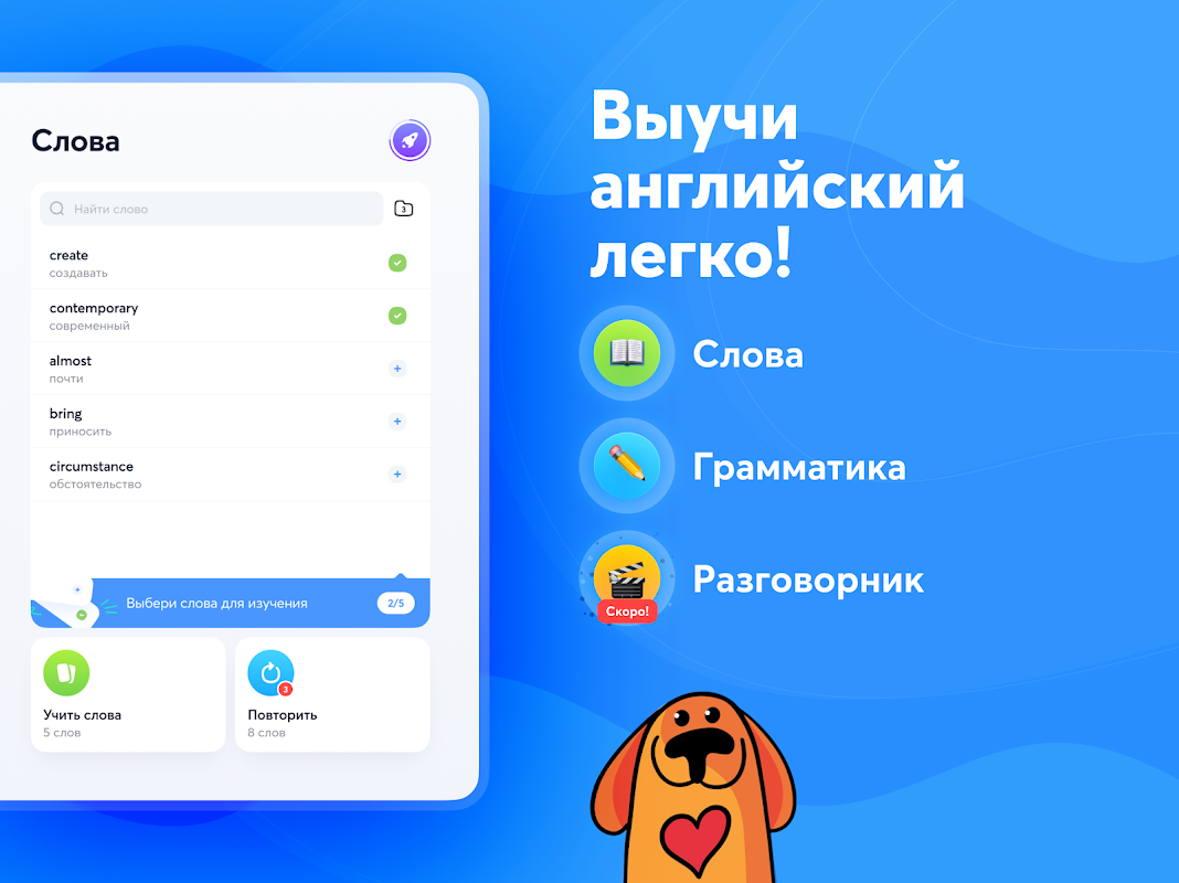 Aprender inglês nunca foi tão fácil. Fizemos tudo para que as aulas fossem realmente emocionantes e eficazes. Os melhores materiais educacionais, fotografias para memorização associativa, dublagem de palavras e frases em inglês, um algoritmo eficiente de memorização - o aplicativo Engo foi projetado para que o ensino de inglês seja realmente agradável e interessante.