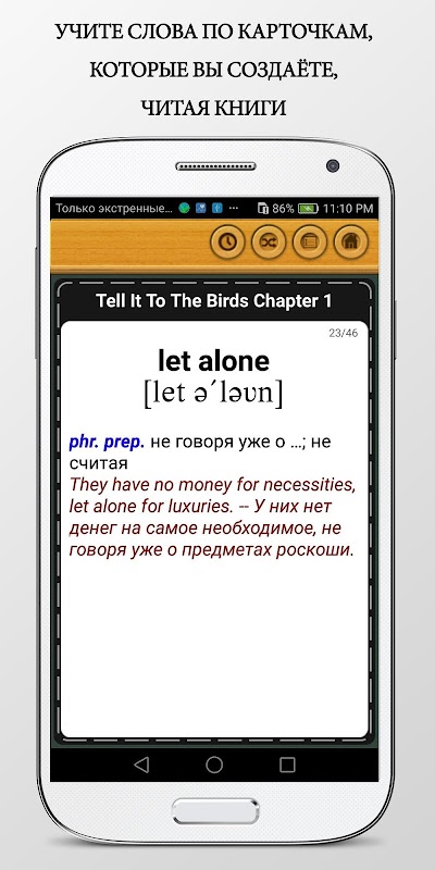 dicionário off-line Inglês-Russo com suporte para visualização de seu próprio depósito.