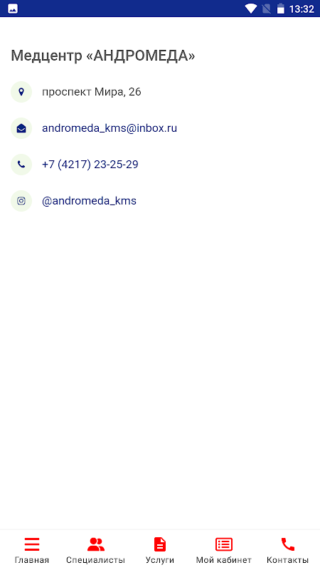 O pedido oficial do centro médico "ANDROMEDA" em Komsomolsk-on-Amur
