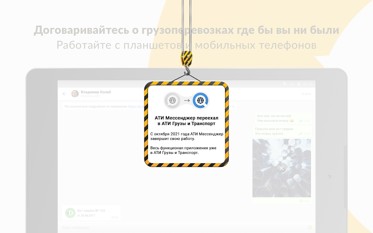 Находите других участников по коду, или пишите им из приложения "Грузы и Транспорт" — и договаривайтесь о грузоперевозках. Обсуждайте детали, обменивайтесь документами и фотографиями.