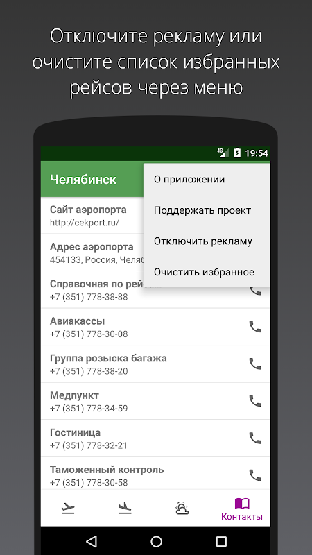 Приложение содержит онлайн-табло прибытия, вылета, краткую информацию о погоде в Челябинске, полезные телефоны аэропорта.