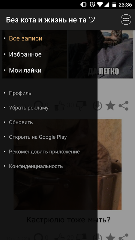 Понравившиеся записи можно комментировать и оценивать. Все понравившиеся картинки можно сохранять в галерее устройства в папке приложения. Ты можешь делиться записями с друзьями через социальные сети, а так же другие установленные на устройстве приложения. Ну и конечно, ты можешь оставлять лайки и сохранять записи в избранное.
