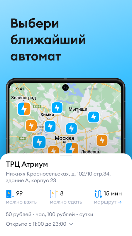 Leve-o e devolva-o onde for conveniente: temos 25.000 estações em mais de 100 cidades na Rússia e em 3 países.