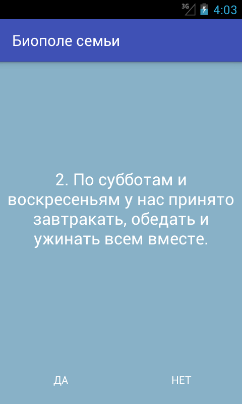 Teste, mostrando o estado das relações familiares.