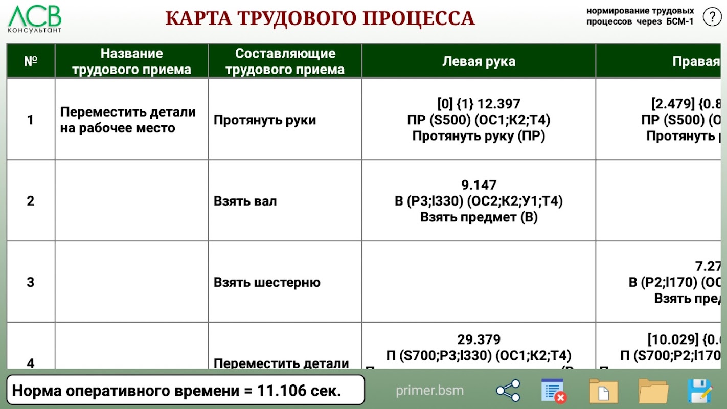 "Sistema básico de padrões de tempo de microelementos (BSM-1)" é um sistema universal sem afiliação da indústria. A aprovação prática do BSM-1 em 11 indústrias confirmou sua aplicabilidade para padronização de mais de 80% dos tipos de trabalho manual.