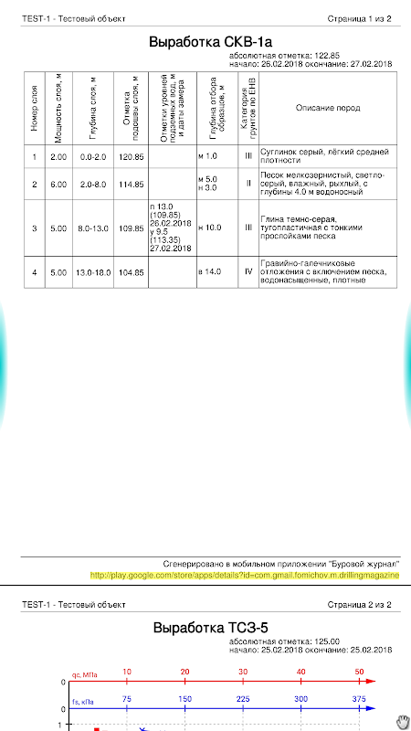 2 - gerar um arquivo PDF com colunas de funcionamento (poços, poços, etc.);
