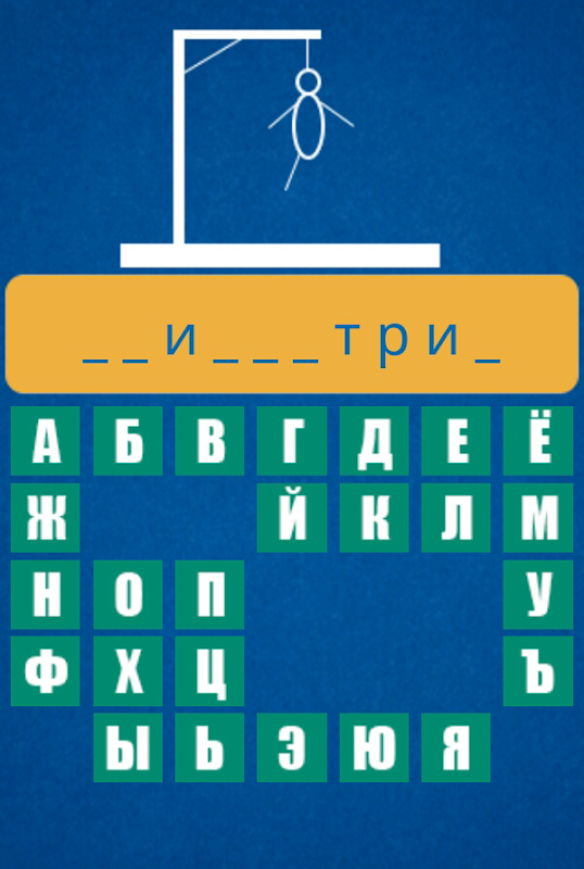Se a letra que você indicou não estiver na palavra, então uma parte do homenzinho é desenhada na forca e assim por diante até que ele acorde, está totalmente desenhada. Uma pessoa tem 6 partes do corpo, o que significa que você tem apenas 6 chances de errar. Se o número máximo de erros for cometido e houver campos livres “_”, a palavra é considerada não adivinhada e você é convidado a tentar adivinhe esta palavra novamente ou tente adivinhar outra.