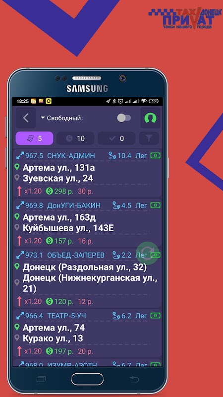 • фильтрация заказов в эфире по радиусу, длине маршрута и цене;