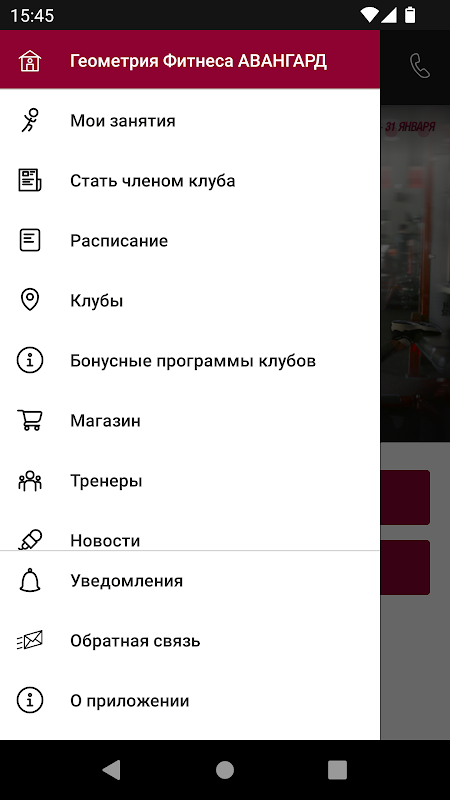 O aplicativo para membros da rede de academias de ginástica Geometry Fitness
