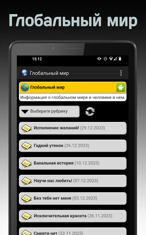 Este aplicativo móvel foi criado para todos que se perguntam sobre o estado do nosso mundo global e se esforçam para encontrar maneiras de uma vida melhor para si e para as gerações futuras. Oferece uma oportunidade de aprofundar diversos aspectos das nossas vidas e sociedades, oferecendo as informações e análises necessárias para compreender a complexa realidade do mundo moderno.