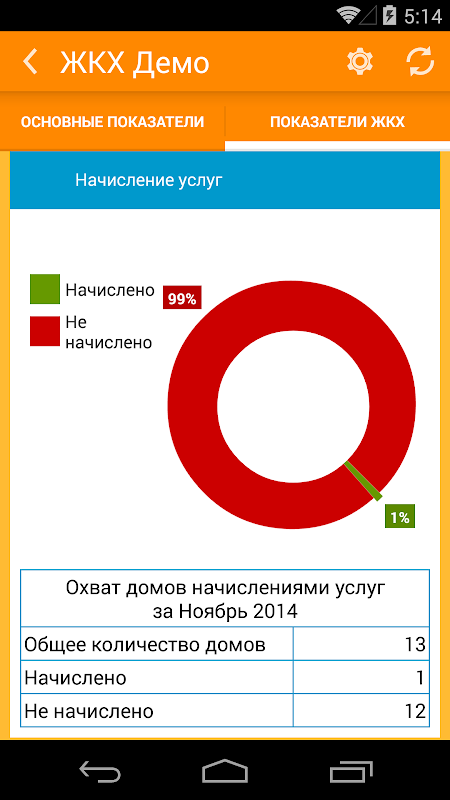 • coleta de leituras de dispositivos de medição (medidores) - você pode observar visualmente qual% das leituras de todos os medidores são atualmente coletadas e inseridas no sistema de cobrança.