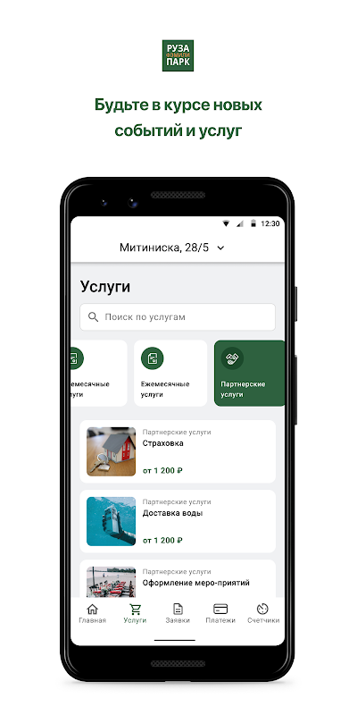Através do aplicativo móvel do complexo residencial "Ruza Family Park" você pode: