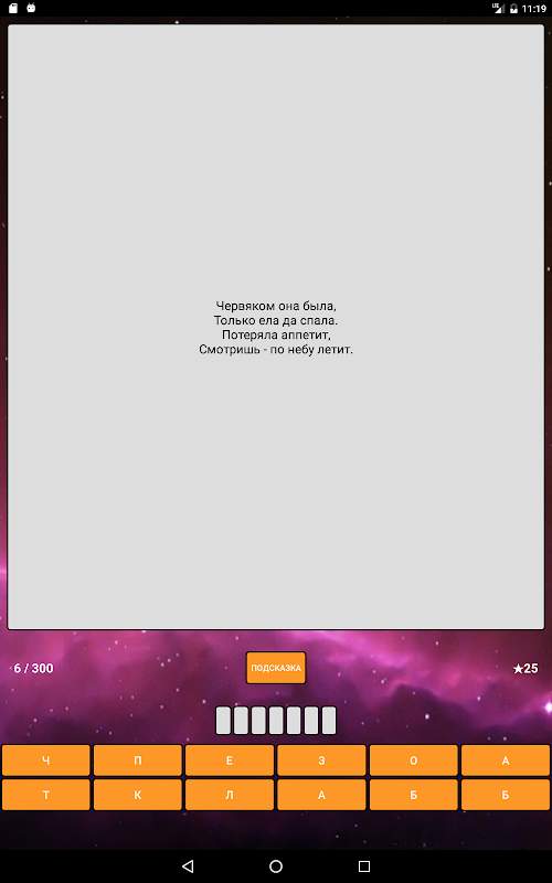 Загадки можно разгадывать одному, с любимыми детьми, в компании с друзьями. Просто установи это бесплатное приложение и открывай каждый раз когда тебе скучно. Например, в дороге или в очереди.